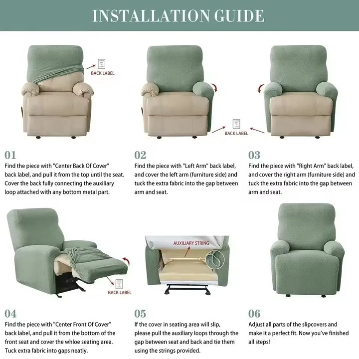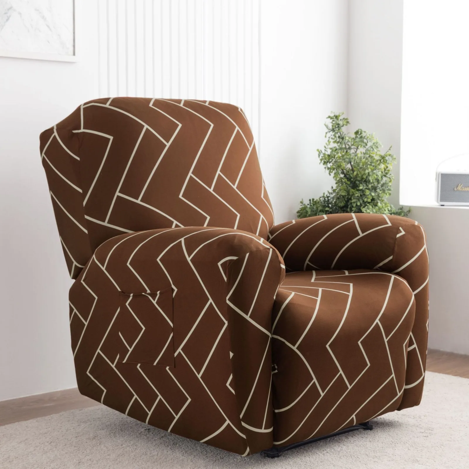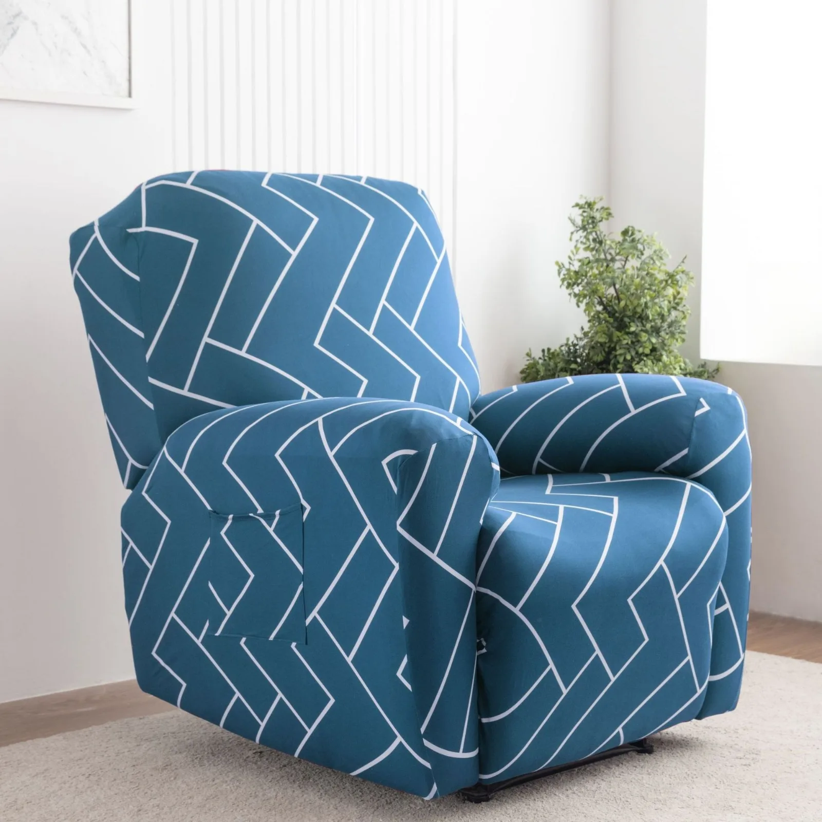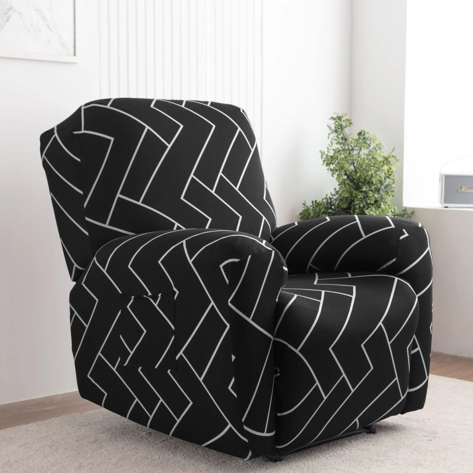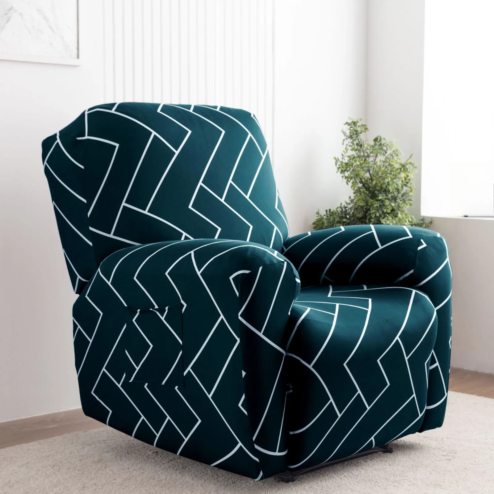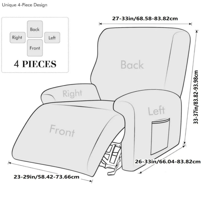 Perfect fit : 4-piece recliner slipcover fits most 1 recliner seats. It consists of 4 separate parts, including 2 arm parts, 1 seat part and 1 back part. Please refer to the size picture before purchasing. With pockets and continuous footboards.