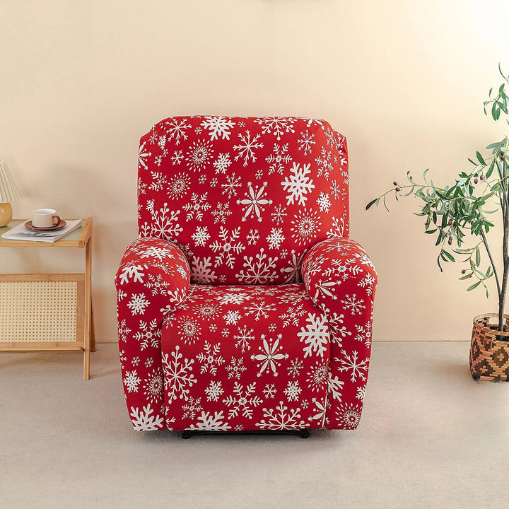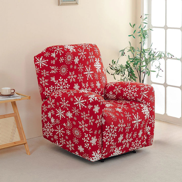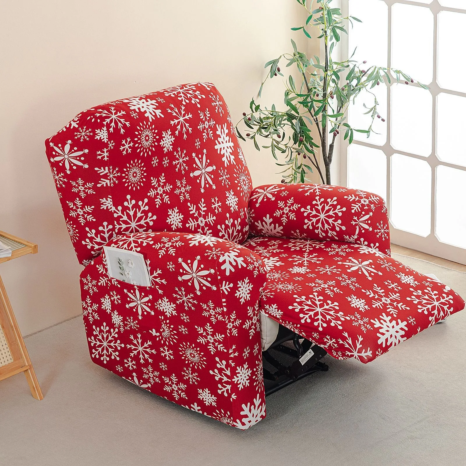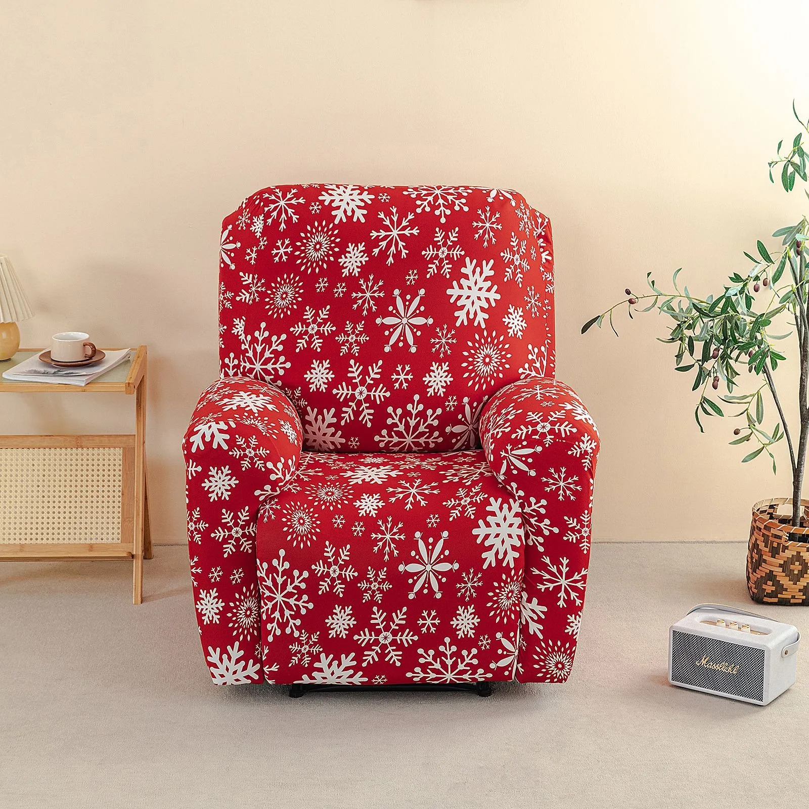 Christmas Snowflakes Stretch Recliner Sofa Cover with Elastic Bottom Soft Washable Furniture Pet Protector Couch Recliner Cover