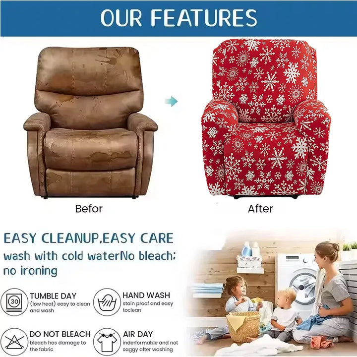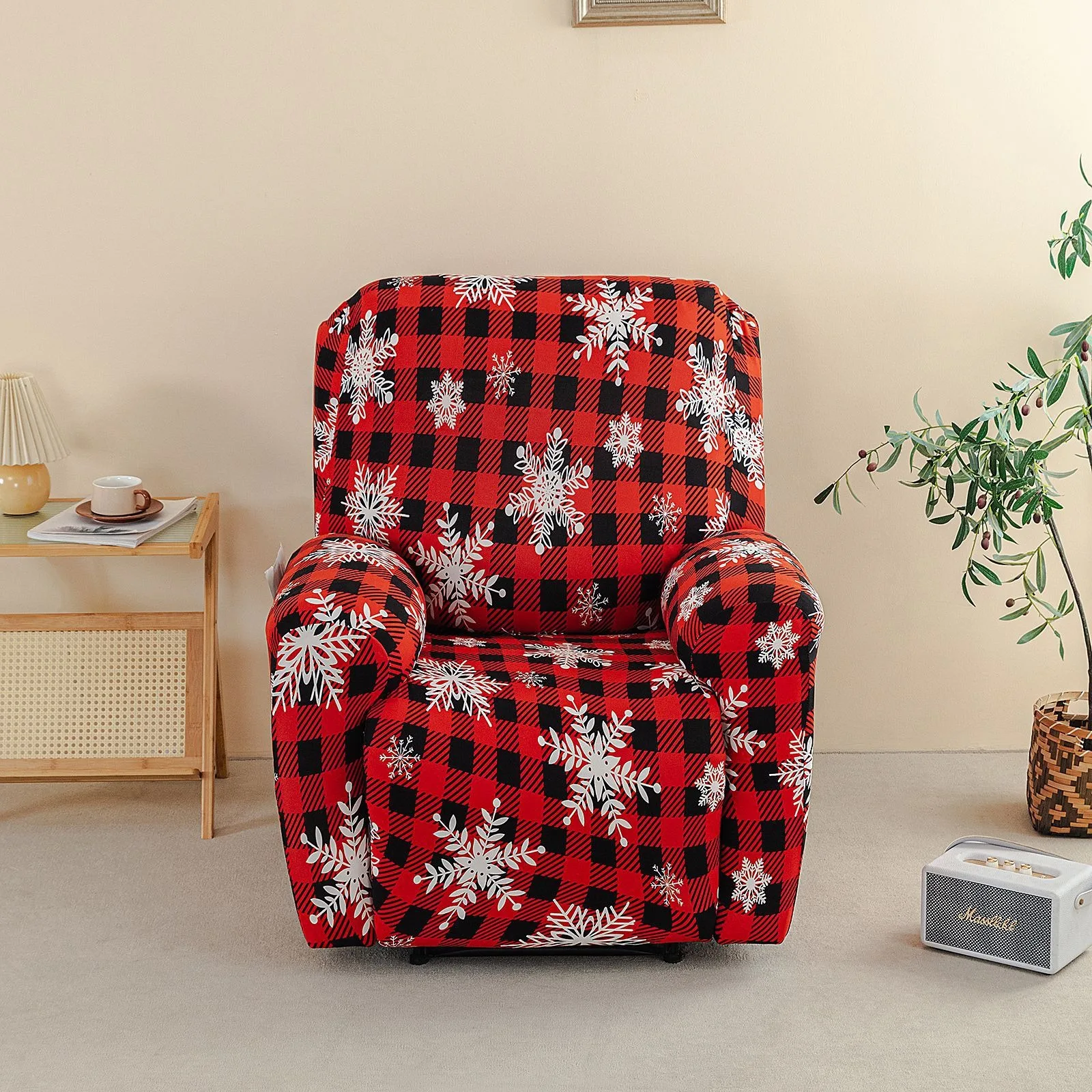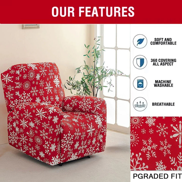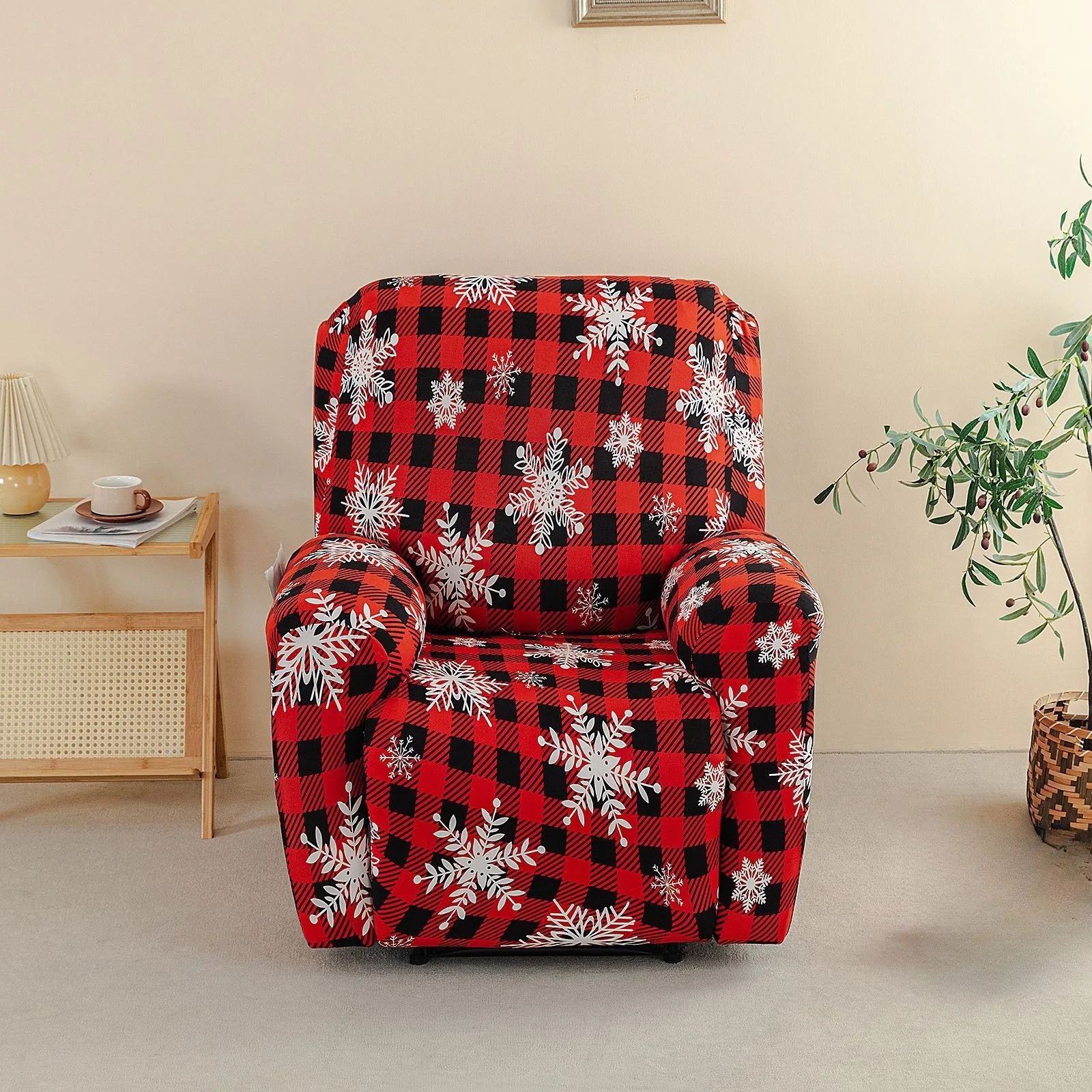Christmas Snowflakes Stretch Recliner Sofa Cover with Elastic Bottom Soft Washable Furniture Pet Protector Couch Recliner Cover