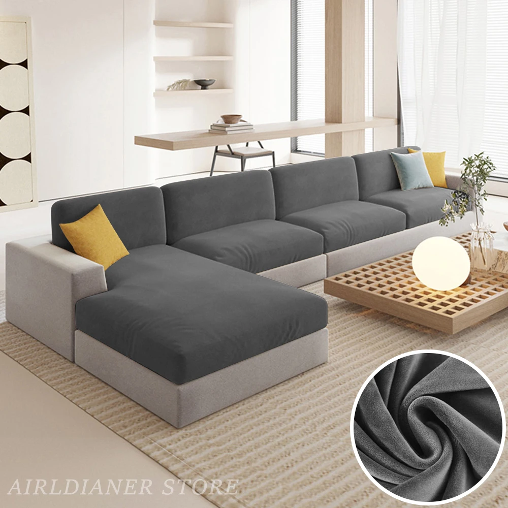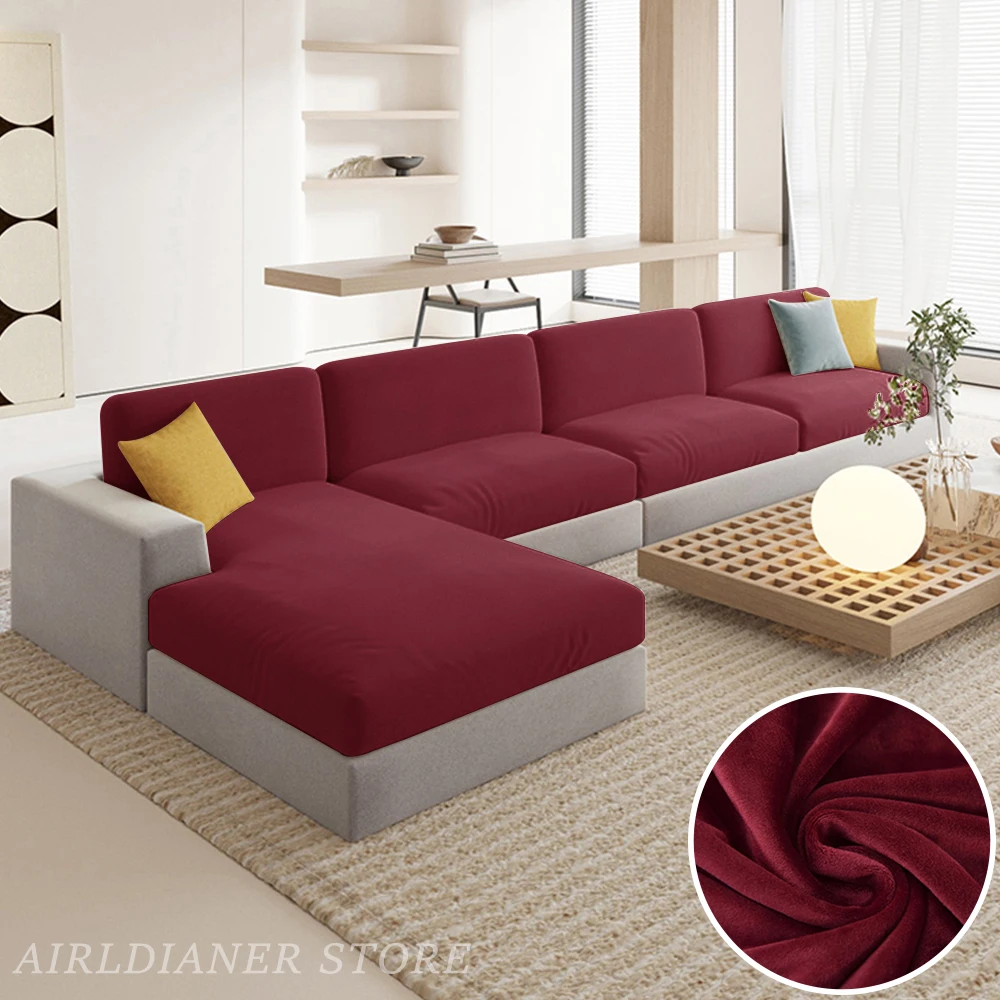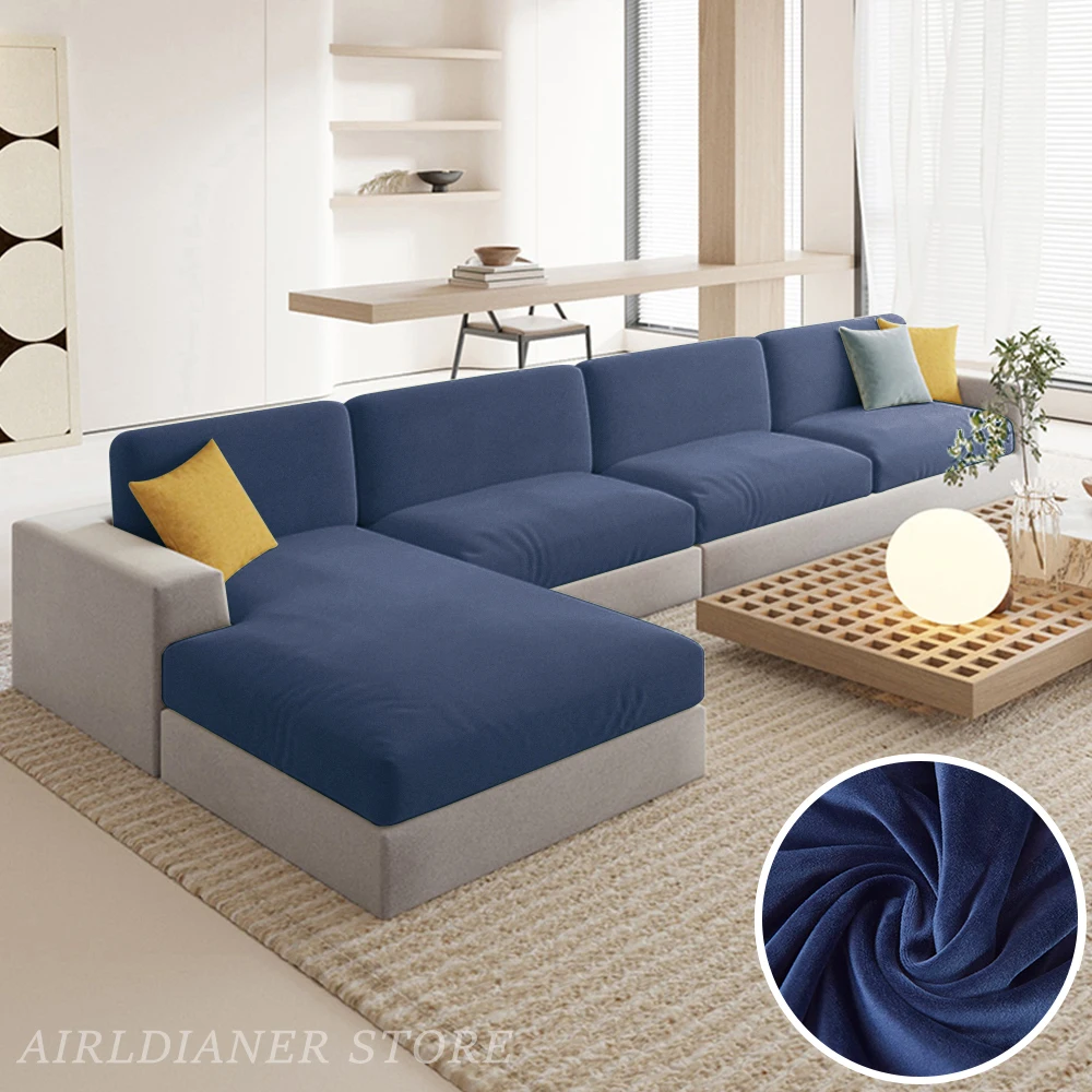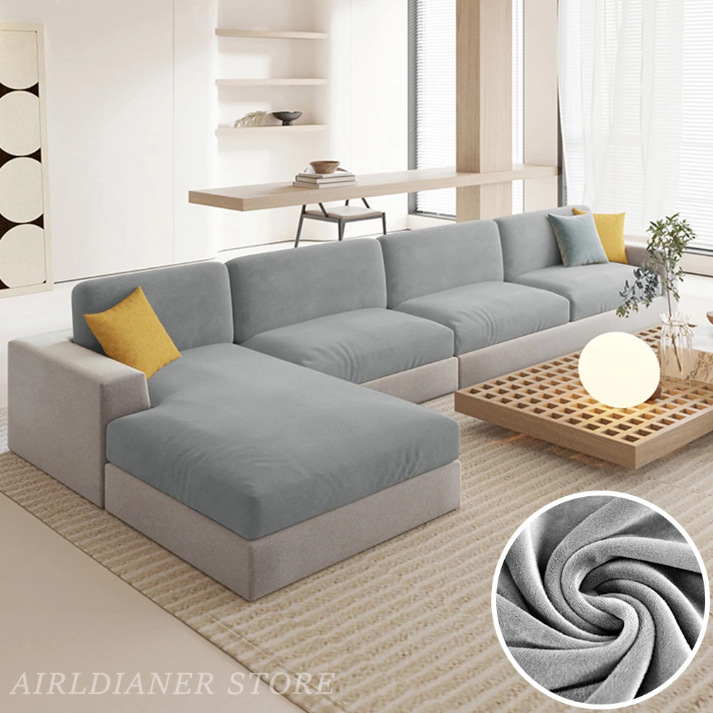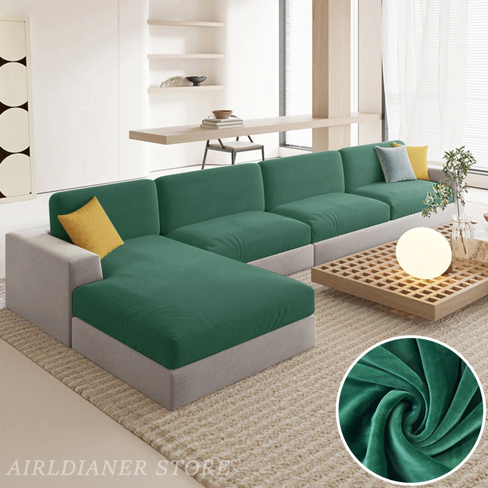 Luxury Velvet Sofa Cushion Covers Super Soft Sofa Seat Cushion Covers Solid Living Room Stretch Sofa Couch Case Washable