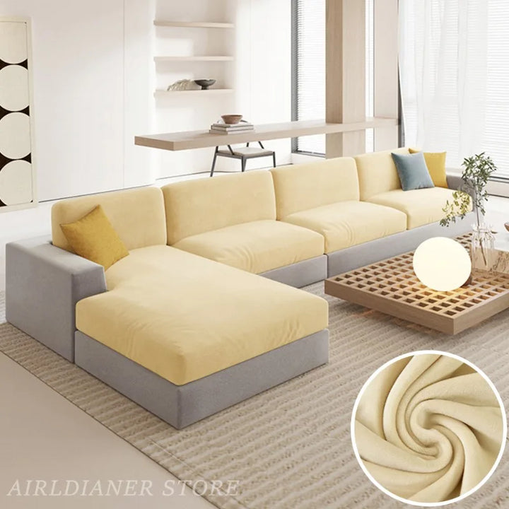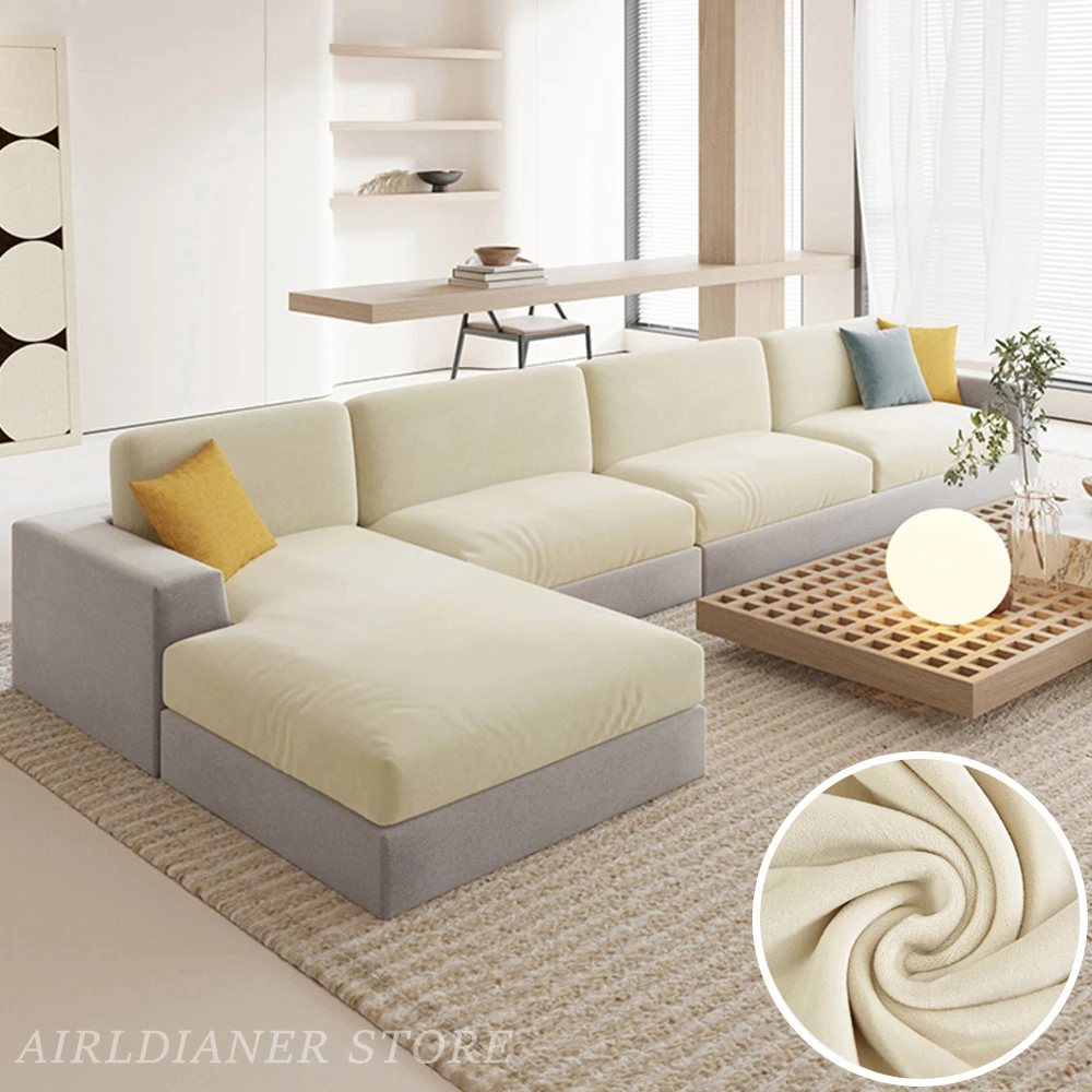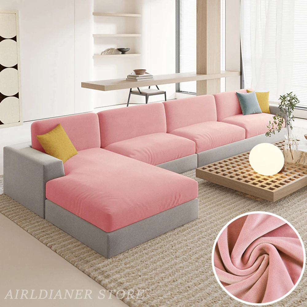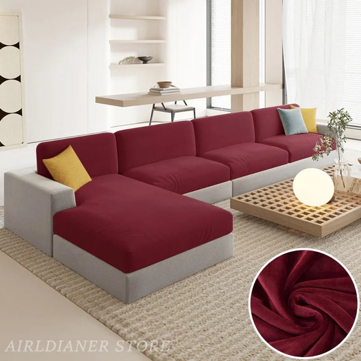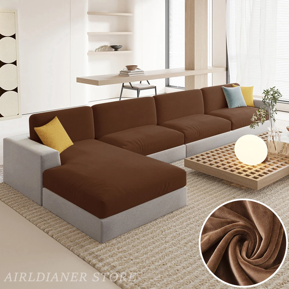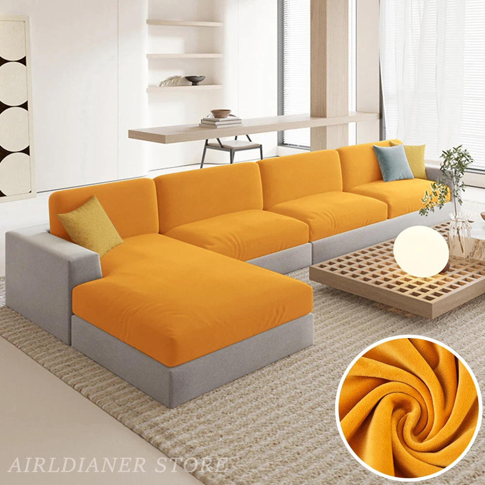 Luxury Velvet Sofa Cushion Covers Super Soft Sofa Seat Cushion Covers Solid Living Room Stretch Sofa Couch Case Washable
