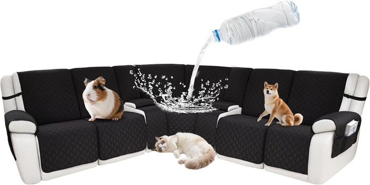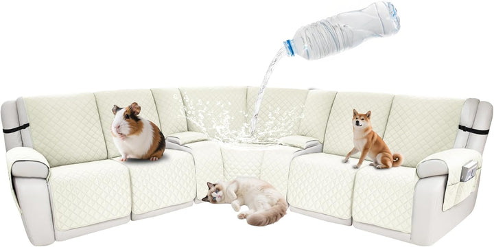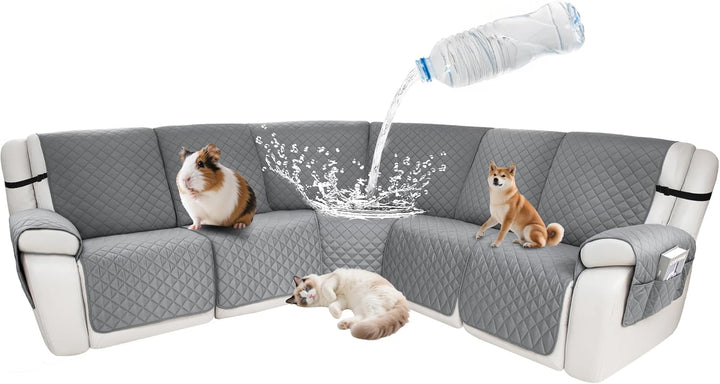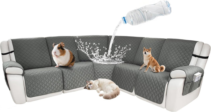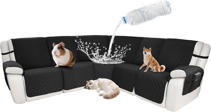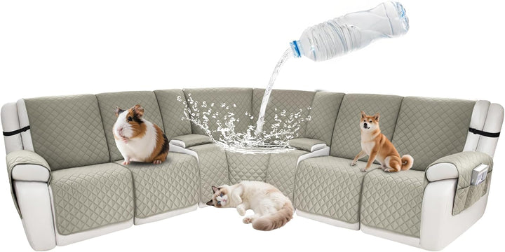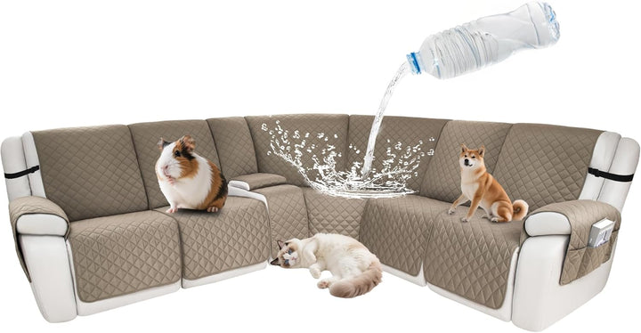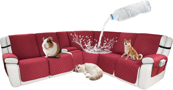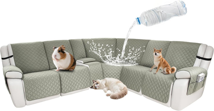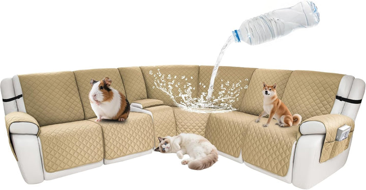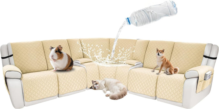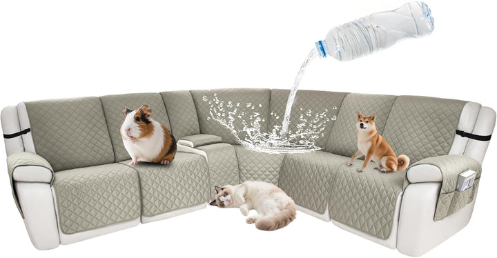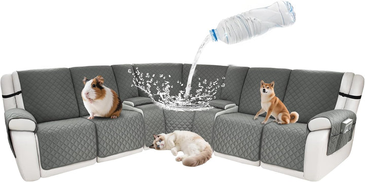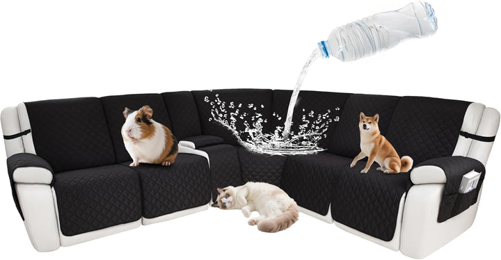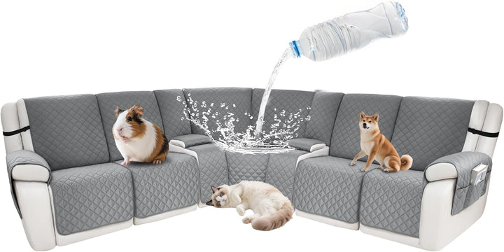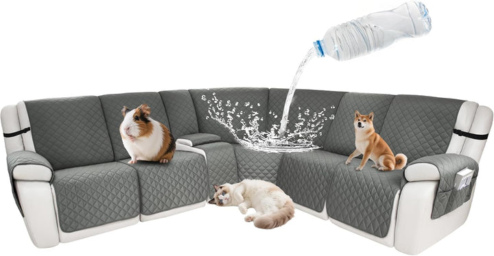 Waterproof Sectional Reclining Couch Covers L Shaped Recliner Sectional Sofa Cover 7 Piece Non Slip Washable Corner Recliner Slipcover Set for Pet Dog