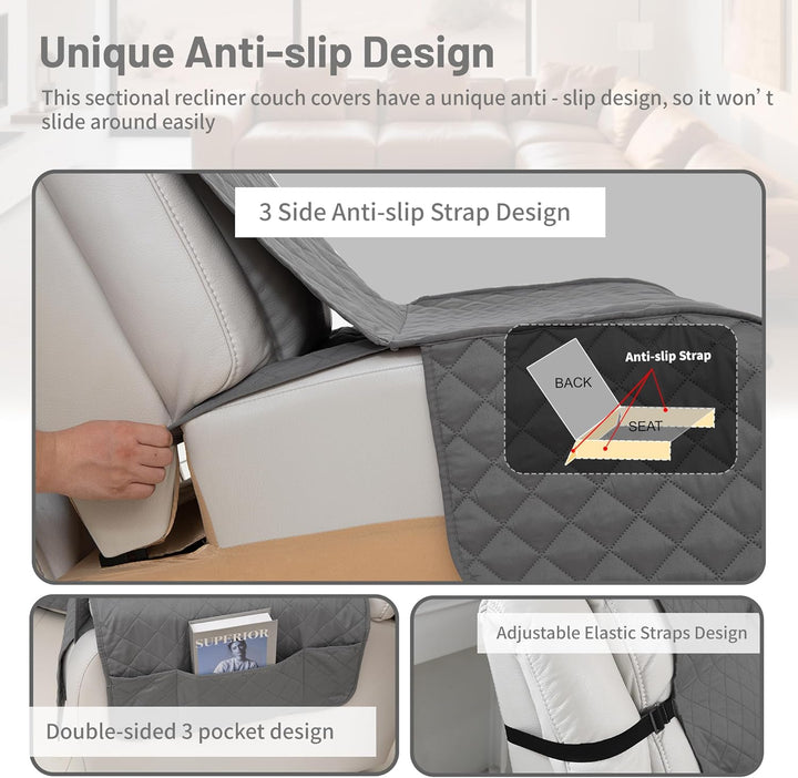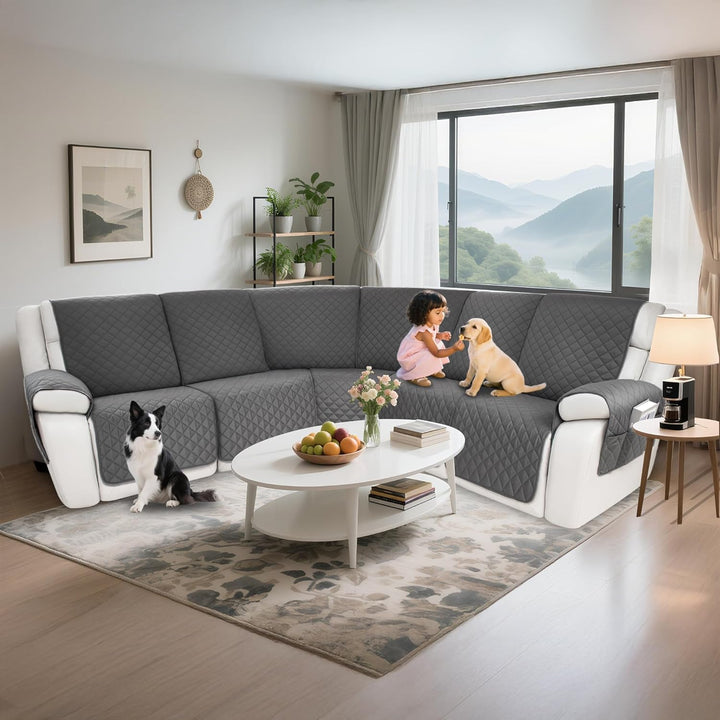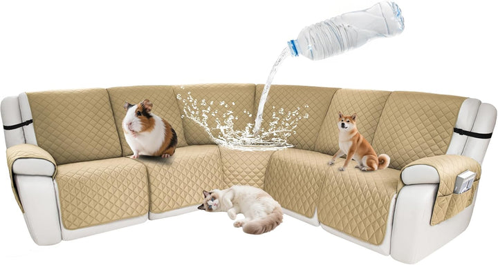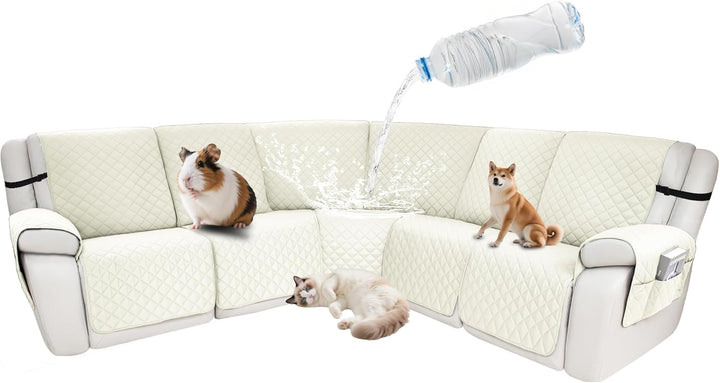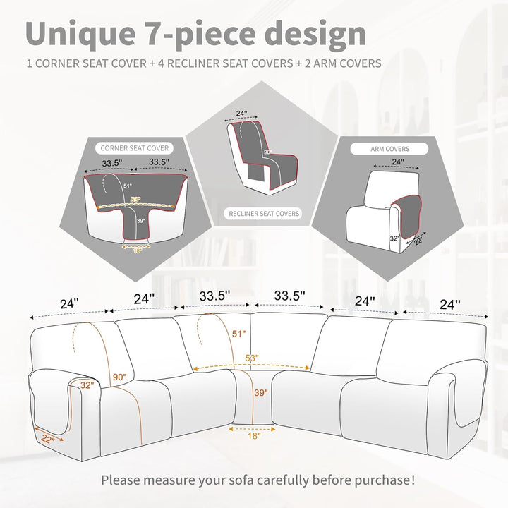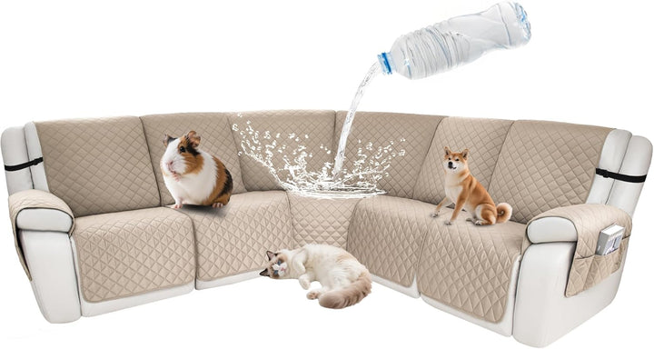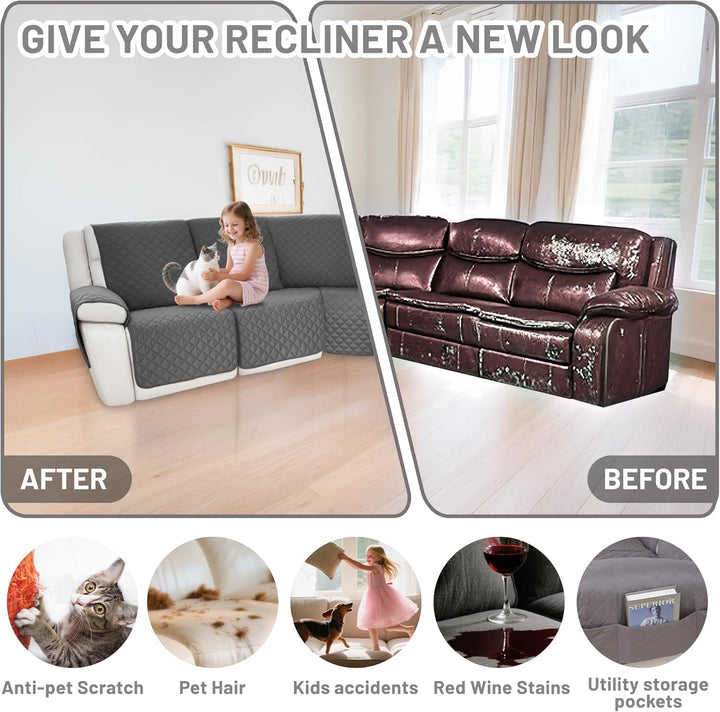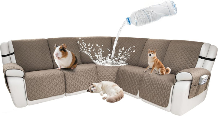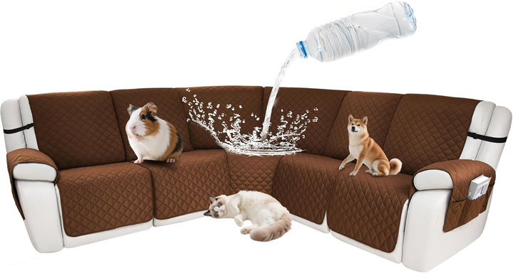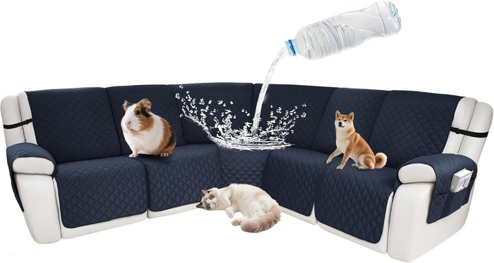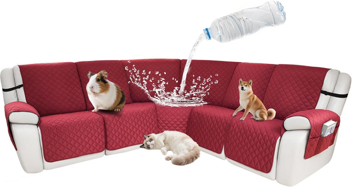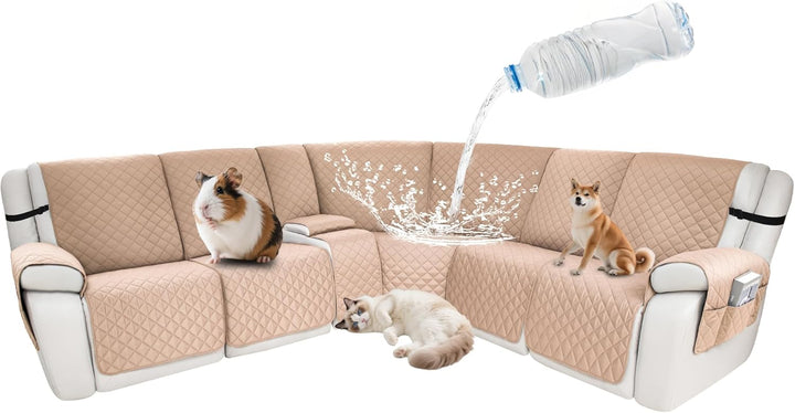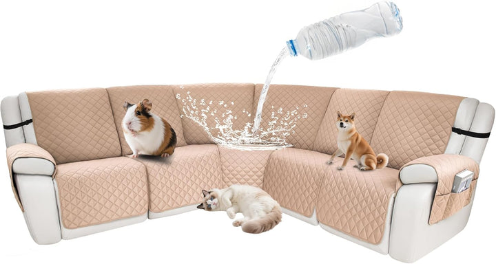 Waterproof Sectional Reclining Couch Covers L Shaped Recliner Sectional Sofa Cover 7 Piece Non Slip Washable Corner Recliner Slipcover Set for Pet Dog